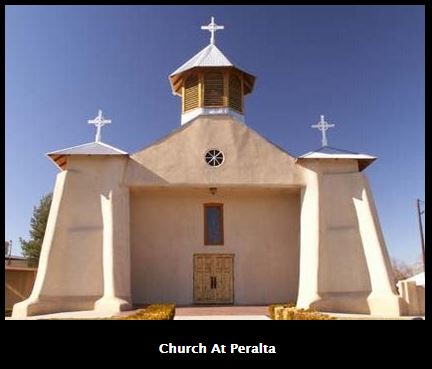 Just past the Pueblo, I crossed the Rio Grande again and continued south through Bosque Farms and Peralta. There’s an attractive church in Peralta that dates back to 1879, and another further down the road in Los Lunas that I could not find a date on.